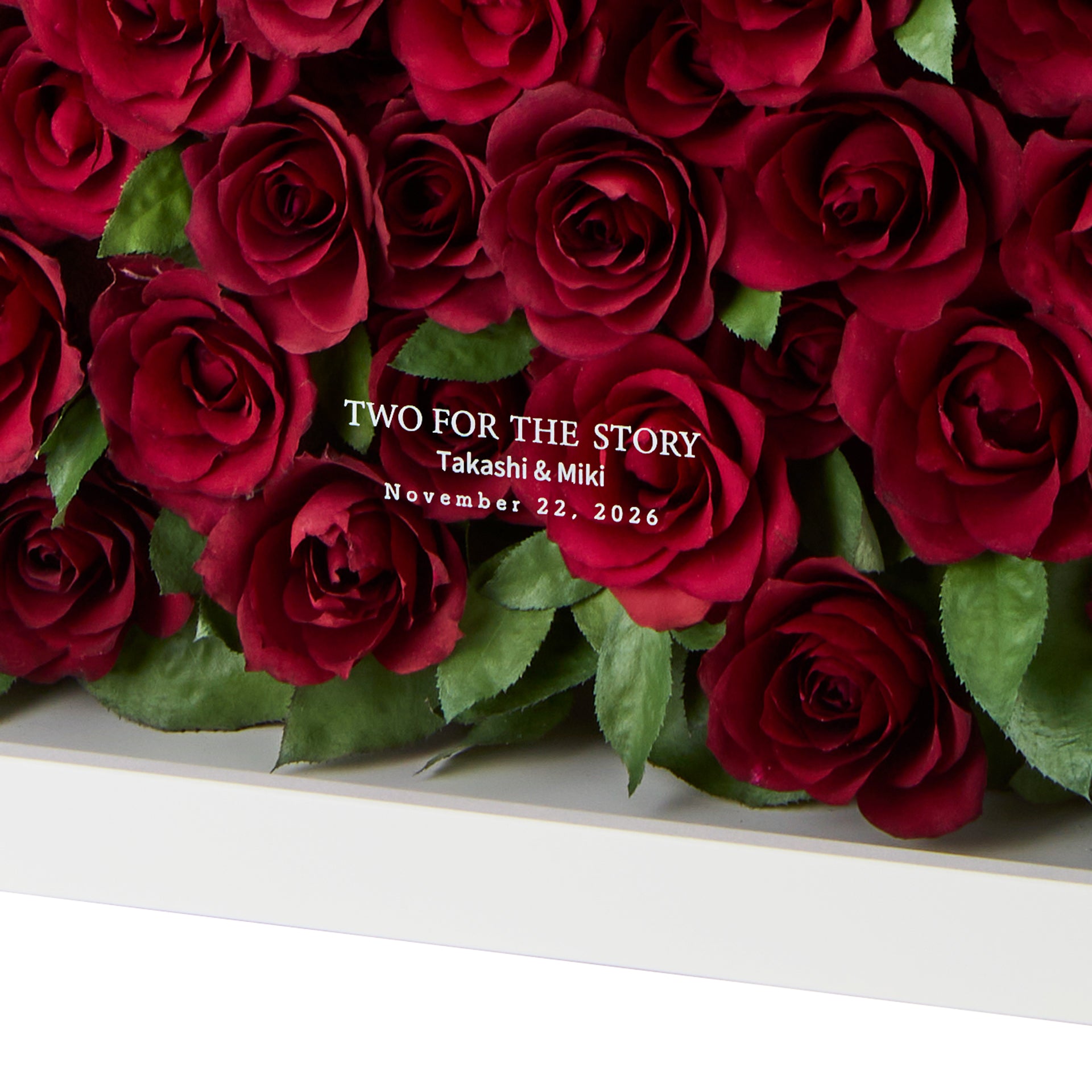 シンプルなオフカラーでどんなインテリアにも馴染むイノセンスホワイト。パノラマ108で思い出のお花を全てのこせます。(※108本までのレイアウトに対応しています)